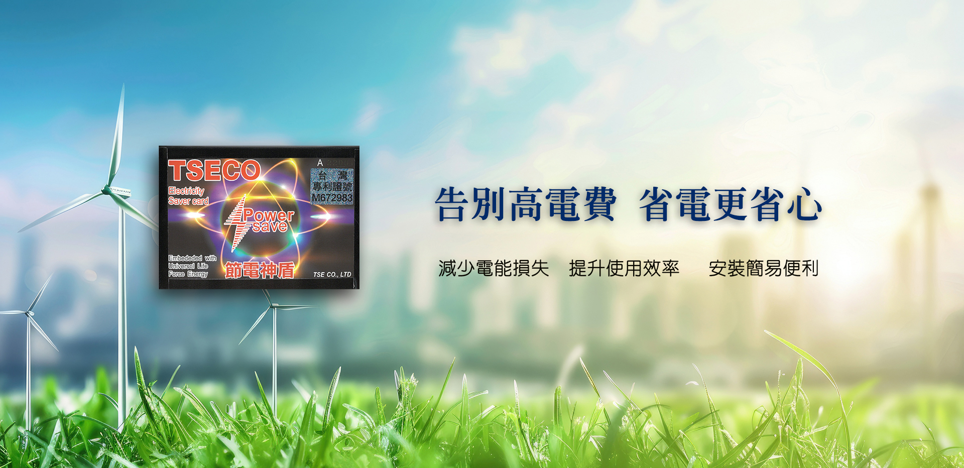 綠能環保 節電原理 安裝流程 專利技術 影音分享 變態省錢法(貼開關箱省電法) MORE 公司簡介 面對高電價時代,我們該如何應對?TSE創新技術不僅能夠有效降低家庭和企業的電力成本,還能為環保做出貢獻,值得廣大民眾與企業關注和採用。 *抑制電流 *穩定電壓 *消除電磁波(輻射) MORE